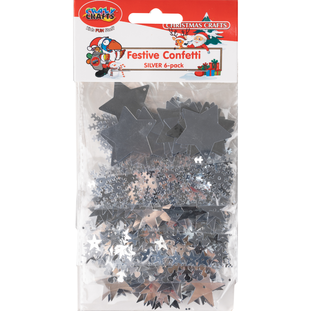 Make your Christmas décor shimmer with Festive Confetti Silver. This 6-pack of dazzling Christmas shapes brings a touch of elegance and shine to your holiday celebrations, ensuring every detail looks polished and festive.