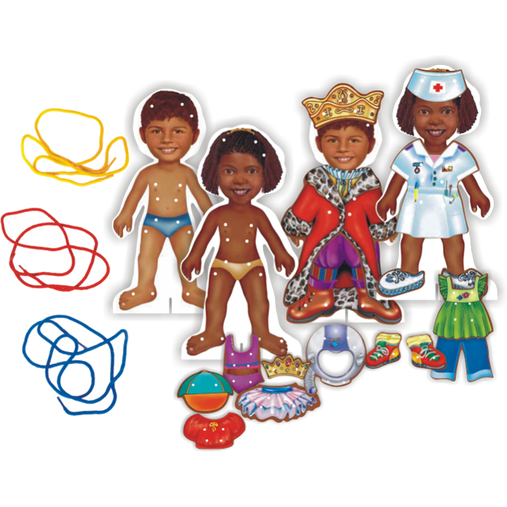 - Complete Set: Includes 1 x Tom doll with stand, 1 x Thandi doll with stand, paper clothes, 6 x threading laces, and instructions.