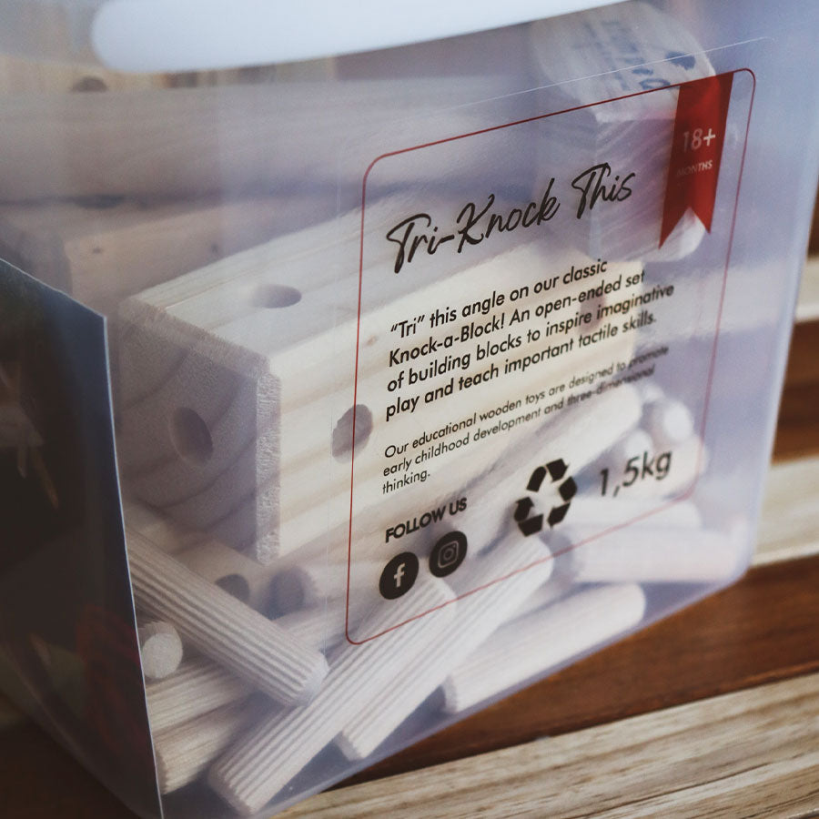 "Tri" this angle on our classic Knock-a-Block! An open-ended set of building blocks to inspire imaginative play and teach important tactile skills.